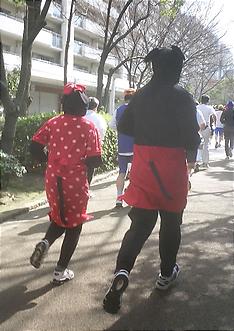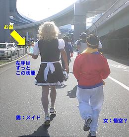 すぐ右前に変なかぶり物をした人がいますが、仮装ランナーです。