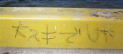 ハーバーランドの埠頭の所には、たくさんの書き込みがあります。